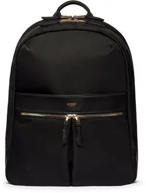 KNOMO Beaufort 15.6" Laptop Backpack Work Bag Purse for Women Large Travel Rucksack with Golden Zip, Black