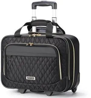 Ponhog Rolling Laptop Bag, 15.6 Inch Rolling Briefcase for Women with Wheels, Carry On Flight Approved Roller Computer Case for Travel Work College Business Wife Mom Teacher, Black