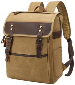 NEHOR Waxed Canvas Vintage Backpack Casual Genuine Leather Laptop Travel Rucksack for Men Women