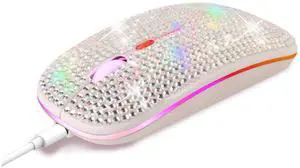 HXMJ Bling Dazzling Rechargeable 2.4GHz+5.2 Bluetooth Wireless Mouse Covered with Crystal Diamond Rhinestone,RGB Backlit,Great Gift idea for Her (Silver)
