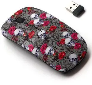 CJCBROES 2.4G Wireless Mouse with Cute Pattern Design for All Laptops and Desktops with Nano Receiver - Skulls Rose Flowers branchess