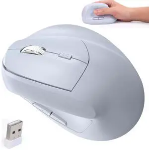 Wireless Bluetooth Mouse Vertical Ergonomic Dual Mode Rechargeable Silent Portable High Precision Optical Cordless Mice with USB Receiver for PC/Laptop/Tablet/MacBook Boy Girl,Reduce Wrist Pain(Blue