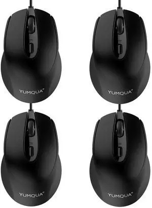 YUMQUA G222 Computer Mouse Wired 4 Pack, Bulk USB Corded Mouse, Office & Home Silent Optical Mice with 2 Adjustable DPI for Computer Laptop Desktop PC