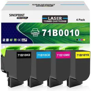 SINOPRINT Compatible Toner Cartridge Replacement for Lexmark 71B0010 71B10K0 71B10C0 71B10M0 71B10Y0 High Yield for Lexmark CS317 CS417 CS317dn CX317dn CS417dn CX417de CX317 (4 Pack-BMCY)