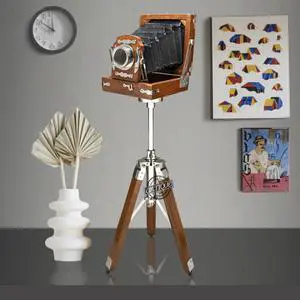 Antique Vintage Look Film Camera on Wooden Tripod Collectible Studio Home Decor Gift - 24 Inches