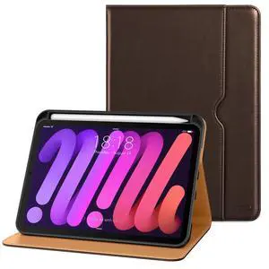 DTTO for iPad mini 7th (A17 Pro) 2024/iPad Mini 6th Generation Case 2021 8.3 Inch, Premium Leather Business Folio Stand Cover for Mini 7/6 with Pencil Holder-Multiple Viewing Angles, Dark Brown