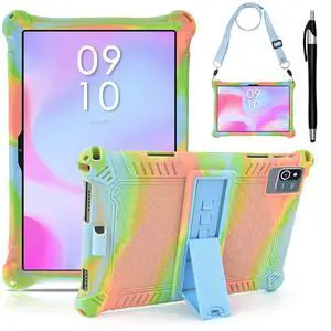 DETUOSI Okaysea 10.1 inch Silicone Tablet Case with Stylus Pen & Shoulder Strap, Moderness 10.1" Case, Soft Portable Protective Cover for QunyiCO 10.1, Azeyou Tab 6 10 inch, Orange Pink & Blue