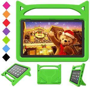 Kids Friendly Case for 10inch Tablet(13th/11th Generation, 2023/2021 Release),SHREBORN Lightweight Shockproof Case Incompatible with iPad,with Cute Cat Handle Stand-Green