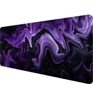 Dark Purple Ripples Desk Pad Mouse Pad Black Purple Lines Large Gaming Mouse Mat with Stitched Edges,Non-Slip Waterproof Rubber Base Mous Mat Office Computer Keyboard Laptop Home 31.5"x11.8"