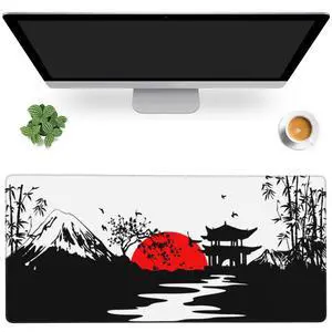 Desk Mat,Japanese Landscapes with Mountains Gaming Mouse Pad,XXL Extended Mouse Pad Mat for Office,Computer,Keyboard with Non-Slip Base Stitched Eges Mousepad 35.4x15.75 inch