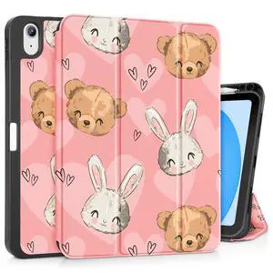 Mektron Case for iPad (A16) 11th Generation 11-inch 2025 Fit iPad 10th Gen 10.9 inch 2022, Tablet Cover with Trifold Stand + Pencil Holder + Auto Wake/Sleep + TPU Back Cover, Cute Bunny Bear
