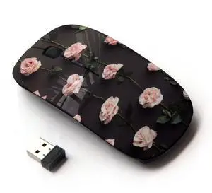 Graphic4You Flower Floral Pattern (Black) Ergonomic Wireless Mouse with Nano Receiver