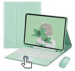 YEEHi Touch Keyboard Case for iPad A16 2025 (11th Gen,11")/ iPad 10th Gen 2022 10.9" Case with Mouse Retro Round Key Cute Color Trackpad Detachable Keyboard Cover,MintGreen