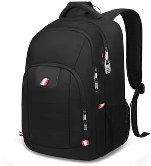Della Gao Travel Laptop Backpack, Black Backpack for Men and Women with USB Slit Business Computer Back Pack (Black, 15.6 Inch)