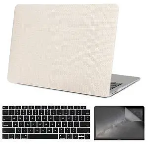 iNOTOGG Compatible with 2022-2025 MacBook Air 13 Inch Case with Touch ID, ( Model No. A2681 A3113 ), Smooth Classic Braided Pattern Hard Shell Case with Keyboard Cover & Screen Protector, White.