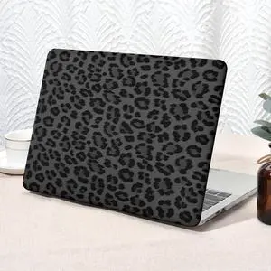 Seorsok Compatible with MacBook Air 15 inch Case 2023 2024 2025 Release A3241 M4 A3114 M3 A2941 M2 Touch ID,Elegant Leopard Grain Leather Plastic Hard Shell Case&Keyboard Cover,Black Grey