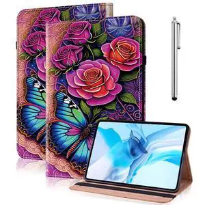 Case for Samsung Galaxy Tab A 10.1 2019 (SM-T510/ SM-T515), PU Leather Tab A 10.1 2019 Case with Elastic Band & Card Slots/Holder, Multi-Angle Stand Tablet Case Cover - Colorful Butterfly