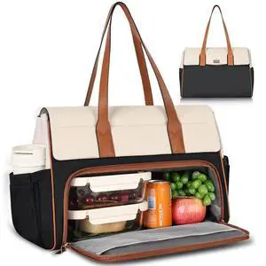 Jetviivid Lunch Tote Bag for Women 15.6 Inch Laptop Bag with Large Lunch Compartment & Cup Holder, Work Bag Laptop Briefcase for Business,Office,Daily,Black&Brown&White