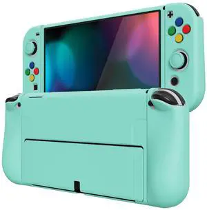 PlayVital ZealProtect Soft Protective Case for Nintendo Switch OLED, Flexible Protector Joycon Grip Cover for Nintendo Switch OLED with Thumb Grip Caps & ABXY Direction Button Caps - Misty Green