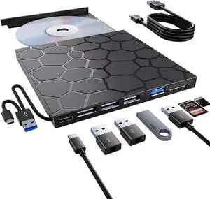 VAIYI External CD/DVD Drive for Laptop, Portable DVD Player for Laptop, 8 in 1 USB 3.0 CD/DVD-ROM +/-RW CD Burner,cd Drive External USB cd Reader Compatible with Desktop Mac,Windows 11/10/8/7 Linux