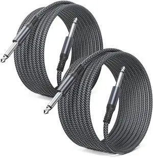 Elebase 1/4 inch 6.35mm TS Guitar Cable 30FT 2Pack,Quarter inch 6.3mm Guitar Instrument Cord,Mono Straight 1/4 Male to Male Audio Wire Line for Electric Bass,Amp,Amplifiers,Keyboard,Pedals