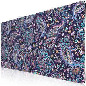 Mouse Pad Paisley Floral, Desk Mat for Desktop, Purple Flowers Desk Pad Extended XXL Large Gaming Mouse pad Anti-Slip with Stitched Edges Waterproof Computer Laptop Keyboard Desk Mat for Women Girls