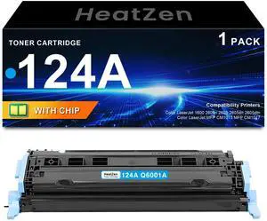 HeatZen 124A Toner Cartridge Replacement for HP 124A Cyan Toner Cartridge for Color LaserJet 1600 2600 2600n 2605 2605dn 2605dtn CM1015 CM1017 MFP Printer Ink, Q6001A