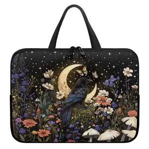 ZIATUBLES Laptop Sleeve 10-17 inch, Shockproof Protective Computer Carrying Cover Case Briefcase Retro Mushroom Floral Raven Print Laptop Sleeve Bag for Work Study, 15inch