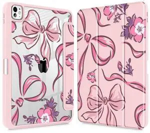 Mektron Case for M5/ M4 iPad Pro 11 inch 2025/2024 with Pencil Holder, Compatible Models: A3357/A3358/A3359/A2836/A2837/A3006, Shockproof Cover Clear Shell, Flowers-Bows-Pink