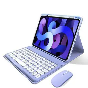 kaitesi Keyboard Case Mouse for iPad 9th/8th/7th Generation 10.2 inch iPad Air 3 iPad Pro 10.5 inch Detachable Bluetooth Keyboard Cute Round Keys (Purple)