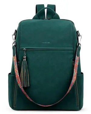 FADEON Leather Laptop Backpack for Women Designer 15.6 inch PU Laptop Bag, Ladies Travel Computer Work Backpack Green