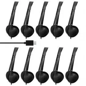 WAHUWAY USB-C Headphones Bulk, 10-Pack Suitable for Classroom, School, Children, and Teenagers, USB Type-C Headphones Compatible with Pad and Smartphones (Black)