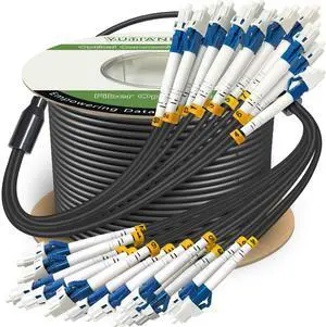 50 Meters 12 Core Industrial TPU LC to LC Outdoor Armored Fiber Optic Cable, 12 Strands OS2 Single Mode Fiber Patch Cable with LC Connectors, 9/125um, OD-6mm, Direct Burial LC-LC