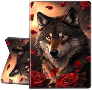 LYHXLYJH Case for 7" Kindle Paperwhite 12th Generation 2024&Kindle Colorsoft Signature Edition 2024-Slim PU Leather Smart Cover with Auto Wake/Sleep,Rose Wolf