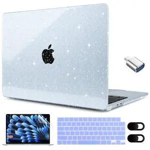 MEEgoodo Glitter Case for M4/M3/M2 MacBook Air 15 inch Case 2025 2024 2023, Fit Model (A3241/A3114/A2941), Laptop Shell with Keyboard Cover&Camera Cover&OTG Adapter& Screen Protector, Sky Blue