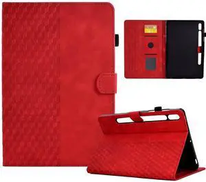 Varohix Case for Lenovo Tab P11 Pro (2nd Gen) / Tab P11 Pro Gen 2 PU Leather Cover Flip Stand Shell Multi-Angle Grid Lattice with Card Holder for Lenovo Tab P11 Pro 2022 11.2 Inch,Red