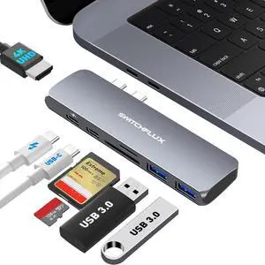 SWITCHFLUX USB C Hub for MacBook Pro/Air M1 M2, 7-in-2 Thunderbolt 3/4 Compatible Adapter with 4K HDMI, 100W PD, 2 USB 3.0 and SD/TF Card Reader