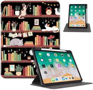 Rotating iPad Air 11 inch Case (M3/M2), iPad Air 5th/4th Generation 2022/2020,360 Degree Rotating Multi-Angle View Stand Pencil Holder Cover for iPad Pro 11"/iPad air 4 & 5, Bookshelf cat
