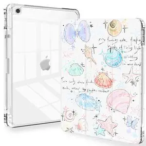 Feams for iPad 9th Generation Case, Trifold iPad 10.2 Case Clear Back Cover with Pencil Holder & Auto Sleep/Wake for iPad 9th/8th/7th Generation 2021/2020/2019, Seashell