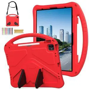 Allytechgroup Kids Friendly Case for Apple iPad Air 11 M3 M2 2025 2024/ iPad Pro 11 M4 2024, EVA Durable Shockproof Handle Kickstand Lightweight Back Cover Case with Shoulder Strap, Red