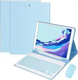 Galaxy Tab A7 10.4 Inch 2022/2020 Case with Keyboard and Mouse Combo, Detachable Magnetic Keyboard+Mouse+Slim Cover with S Pen Holder for Samsung Tab A7 Model (SM-P610/P613/P615/P619), Sky Blue