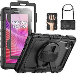 SEYMAC Case for Lenovo Tab One 8.7 inch/ K9 TB305FU (2025), Heavy Duty Full-Body Shockproof Protective Case with Screen Protector, Stand, Hand/Shoulder Strap and Pen Holder, Black