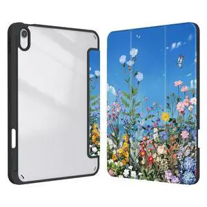 Xkladz Case for iPad (A16) 11th Generation (2025) 11 inch, iPad 10th Generation (2022) 10.9 inch, Case with Pencil Holder, Clear Back Cover Cute Design for Women Girl, Auto Sleep/Wake, Wildflower A