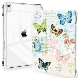 Feams for iPad A16 11th Generation 11 Inch 2025, iPad 10th Generation Case 10.9 Inch 2022 Case Clear Back Cover with Pencil Holder & Auto Sleep, Colorful Butterfly