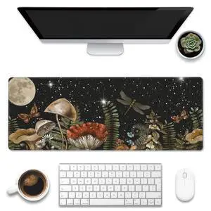 Eflxamz Large Gaming Mouse Pad for Desk,Cute Forest Mushroom Desk Mat,Starry Night Mushroom Desk Pad,Extended Big Computer Keyboard Mouse Pad with Non-Slip Base and Stitched Edge,31.5"x11.8"