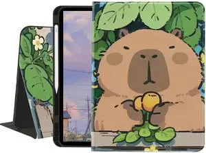 Cute Funny Capybara Case for iPad 9th/8th/7th Generation 10.2" 2021/2020/2019,Textured Folio Case with Pencil Holder Multi-Angle View Adjustable Stand Auto Wake/Sleep Cover for Girls Boys
