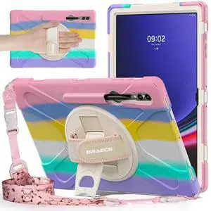 BRAECNstock Kids Case for Samsung Galaxy Tab S10 Ultra/S9 Ultra/S8 Ultra 14.6" 2024/2023/2022 Shockporoof Samsung Tablet 14.6 inch Case with Pen Holder Rotating Hand Strap & Stand - Colorful Pink