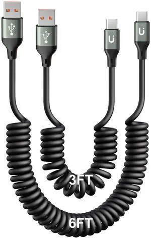 USB A to USB C Cable for Car 3FT/6FT, 2Pack Coiled USB Type C Cable Fast Charging, USB C Cable Compatible with iPhone 17/16/15 Pro Max/Samsung Galaxy S20 S10 Plus Note 10 9 8 and More USB C Devices