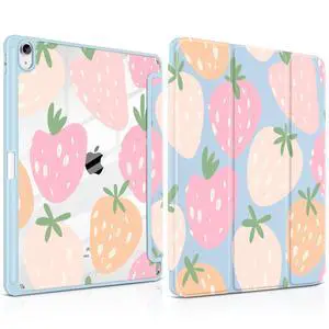 MEEgoodo Case for iPad Air 13 inch 2025(M3) / 2024(M2), Tablet Cases with Transparent Acrylic Back Shell, Cover with Pencil Holder + Auto Wake/Sleep + Trifold Stand, Cute Drawn Strawberries