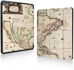 Trizoanic Case for iPad 10.2 Inch (2021/2020/2019, 9th/8th/7th Gen), Slim Protective Cover with Pencil Holder, Auto Wake/Sleep, Trifold Stand & Shockproof TPU Back, America map